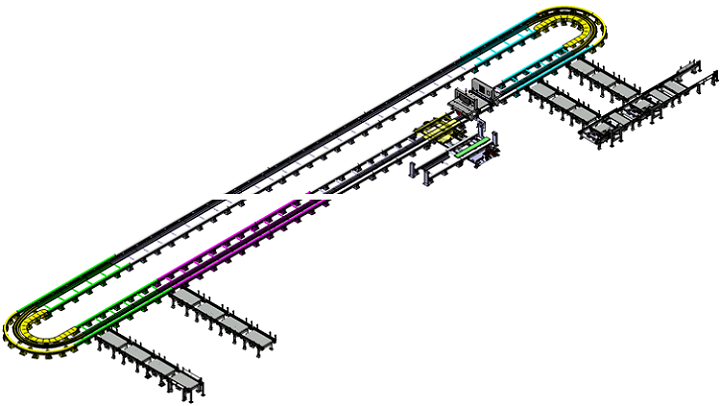 RGV 是一種在固定軌道上進行快速移動的臺車,可搭配輸送機、伸縮貨叉等設備,在智能控制與調度系統(tǒng)的指令下,沿著環(huán)形軌道或直線往復式軌道將物料快速、準確、靈活地配送到多個設定的站臺。