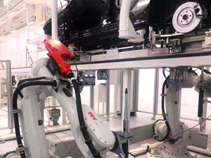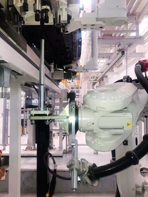 該工廠的生產(chǎn)節(jié)拍為20JPH,主要用以生產(chǎn)HS7、HS5車型。合裝托盤為全新設(shè)計,集成了后懸彈簧壓緊機構(gòu)接口,結(jié)構(gòu)緊湊兼容性高。底盤擰緊首次采用了機器人+視覺識別系統(tǒng)的設(shè)計應(yīng)用,效果良好。